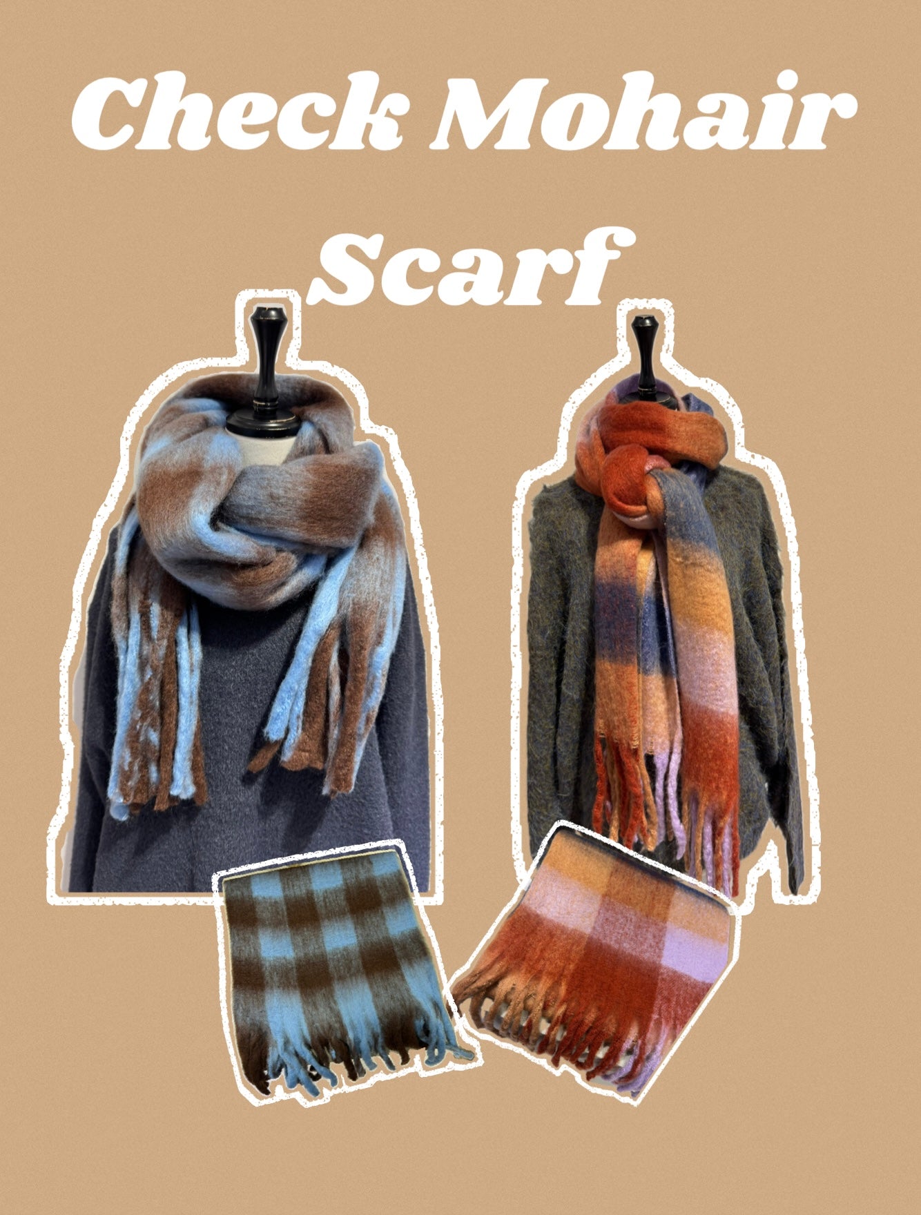 柔らかくふわふわのモヘア素材で仕立てた、女性のも男性にも大人気チェック柄マフラー。