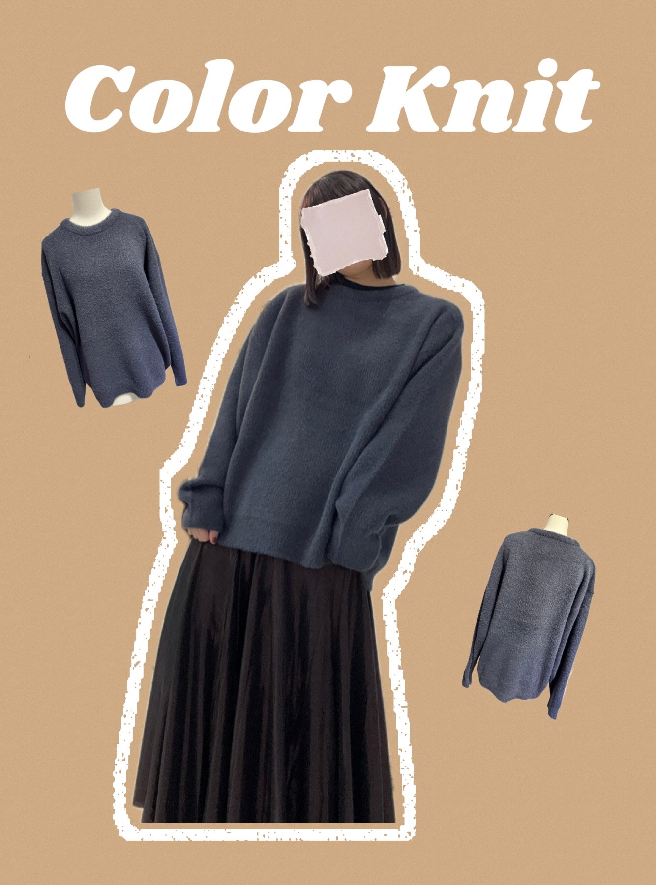 ふんわり柔らかなフェザーヤーンを使用したカラーニット。